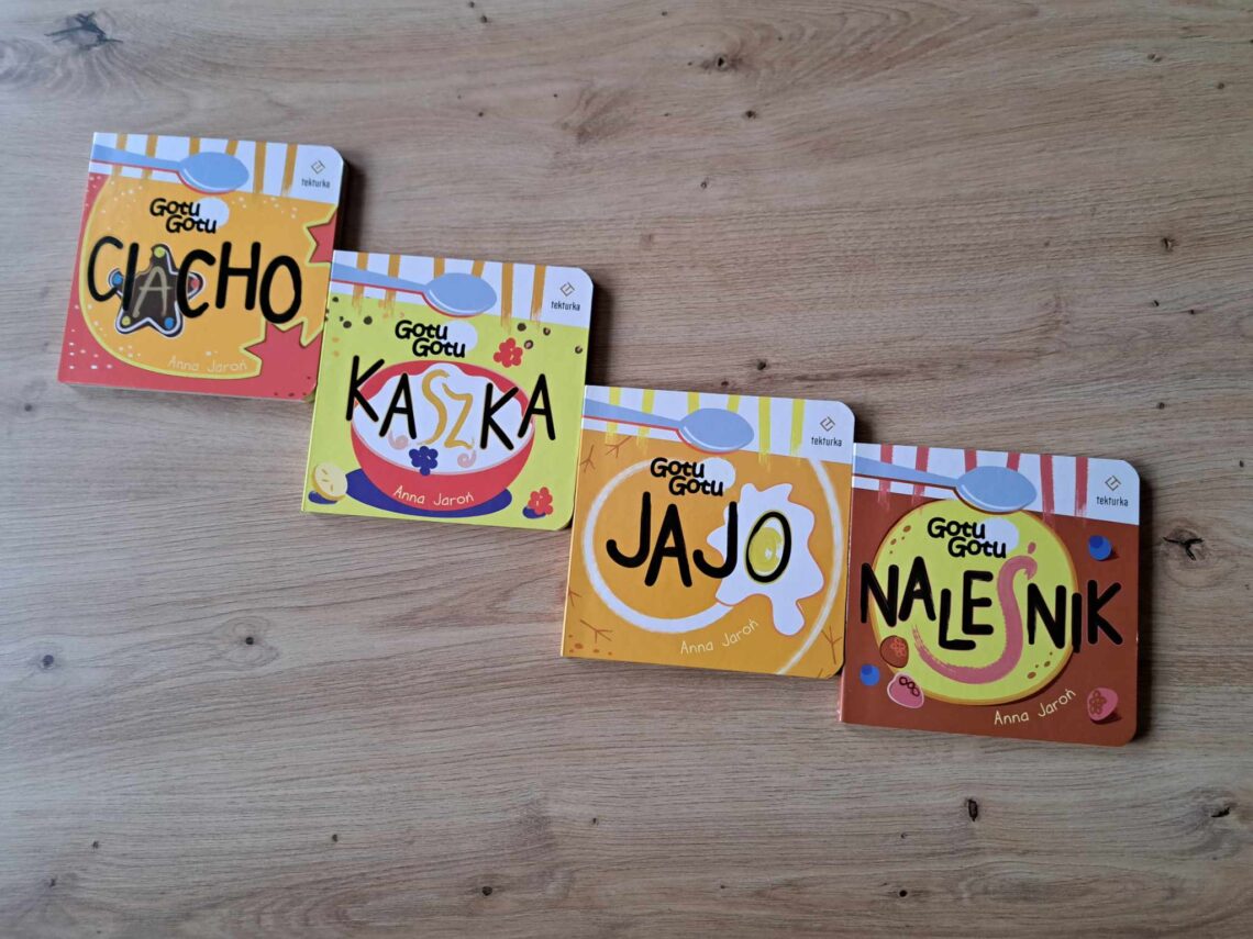W serii czterech kartonówek pt. „Gotu Gotu” najmłodsi czytelnicy pobudzają swoje apetyty, a przede wszystkim wyobraźnię. A to zaś sprawia, że w ich sercach jeszcze bardziej potęguje zainteresowanie lekturą książeczek pt. „Ciacho”, „Kaszka”, „Naleśnik”, „Jajko”. Zatem drogi czytelniku – smakuj!, słuchaj!, dotykaj!, wąchaj!, patrz! i wraz z Anną Jaroń zajrzyj do kuchni, by odkryć piękno jej świata. Gotowanie to doskonałe urozmaicenie dla każdego z nas. Nie tylko daje nam smaczne posiłki, lecz również przyjemność odkrywania swoich kulinarnych talentów. A książki dla najmłodszych czytelników autorstwa Anny Jaroń są wyjątkowym i ciekawym zaproszeniem do wspólnego gotowania. To sprawi, że z wypiekami na twarzach będziemy poznawać smaki i czerpać przyjemności płynącą z odkrywania…