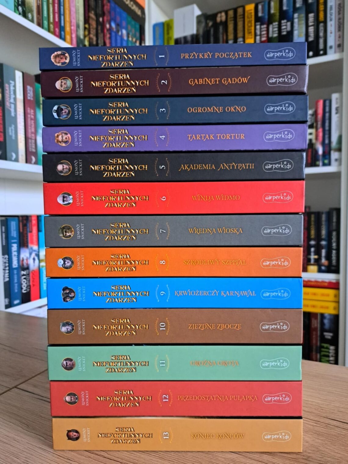 Książki „Przykry początek”, „Gabinet gadów”, „Ogromne okno”, „Tartak tortur”, „Akademia antypatii”, „Winda widmo”, „Wredna wioska”, „Szkodliwy szpital”, „Krwiożerczy karnawał”, „Zjezdne zbocze”, „Groźna grota”, „Przedostatnia pułapka”, „Koniec końców” ukazały się nakładem Wydawnictwa HarperKids Polska, HarperCollins Polska