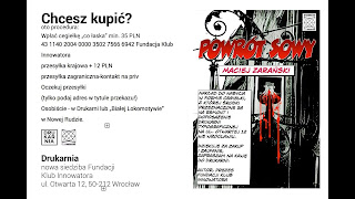 Powrót Sowy” Macieja Zarańskiego to naprawdę mocny powieściowy debiut. Książka ta jest nie tylko kryminałem – wszelakość gatunku literackiego jest równie bogata jak treść. Można ją określić jako kryminał przygodowy z elementami historii oraz geograficzną topografią w tle. Tak tak, czytając powieść Macieja Zarańskiego poznajemy nie tylko ciekawą, intrygującą i wciągającą do cna historię będącą fikcją literacką, ale również zapoznajemy się z historią Kotliny Kłodzkiej – Nowej Rudy oraz topografią tych terenów. Osoba nie będąca w tych obszarach, dzięki Zarańskiemu może oczami wyobraźni przechadzać się terenami, w których dzieje się akcja. Jest to możliwe dzięki wiarygodnym, realnym opisom, przez co czujemy się jakbyśmy byli w tych miejscach, znali je osobiście. Książka jest również ciekawą lekcją historii czasów II wojny światowej, bowiem jej wątki sięgają czasów, gdy władze niemieckie próbowały prowadzić eksperymenty w tunelach podziemnych Kotliny Kłodzkiej. Autor zapewnił czytającemu swoisty „jackpot emocji”, gdy już zdaję się nam, że jesteśmy blisko rozwiązania zagadki sprzed lat, powracamy retrospekcjami do czasów wstecz, by ponownie wrócić do teraźniejszości. Główny bohater Adam Sowiński powraca po latach w rodzinne strony, by rozwikłać zagadkę tajemniczego zniknięcia sprzed lat, by wytropić samego siebie z przeszłości. Czy mu się uda? Warto poszukać odpowiedzi na stronach powieści, gdyż nie tylko poznamy sekrety wojenno-rodzinne ojca Sowińskiego, ale przeżyjemy ciekawą historię. Wartością dodaną książki, są ilustracje komiksowe, które odzwierciedlają kwieciste opisy, bogaty język ekspresji oraz to co czytelnik wyobraża sobie podczas zgłębiania przygody głównego bohatera. Książka zawiera również wiele ciekawych sformułowań. „Austriacki malarz wpadł na kreatywny pomysł i postanowił na nowo sportretować porządek świata”. Myślę, że każdy z nas wie kogo autor książki miał na myśli. „Powrót Sowy”, trzyma w napięciu, a im bliżej końca tym natężenie jest większe – książkę chce się szybko skończyć, by dojść do sedna rozwiązania zagadki sprzed lat, jednak gdy już się skończy, żałuję się, że to już koniec. Jednak nic straconego, bowiem jak zapewnia Maciej Zarański – „Adam Sowiński powróci w KAT – kolejnej części cyklu Powrót Sowy”, książki napisanej z pasją i misją.