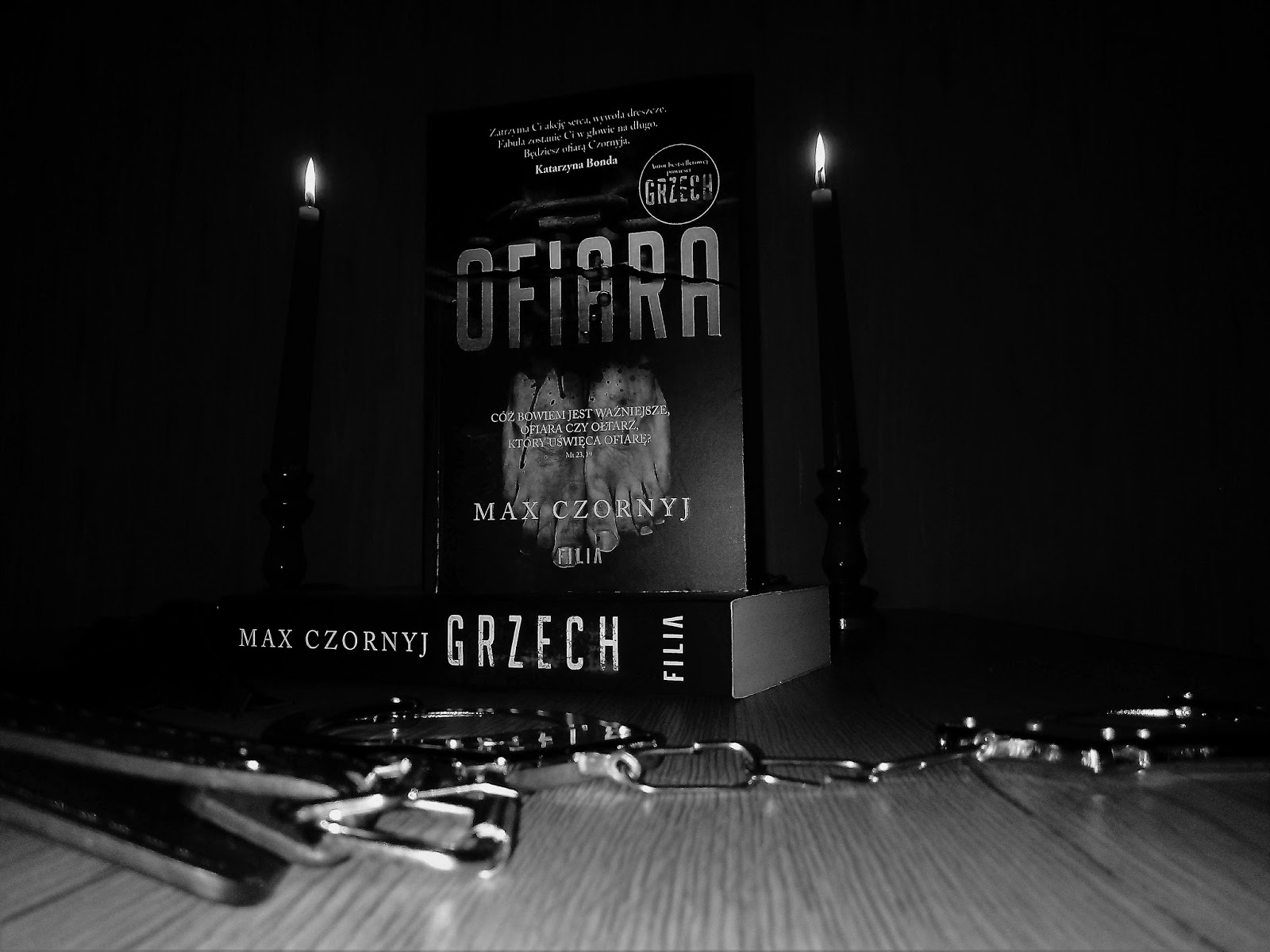 Wracając do książki jak i samego autora, muszę przyznać, że Max Czornyj zaimponował kreatywnością oraz niebywałą perfekcją podkręcania emocji stawiając je na ostrzu noża. Brutalne opisy sadystycznego oprawcy pozwalają umieścić Maxa Czornyja na liście czołowych twórców gatunku. Należy autora pochwalić za styl, pomysłowość, podkręcanie napięcia na każdej stronie, prowadząc czytelnika w stronę mrocznej otchłani, gdzie czeka nas „Pokuta”, w której komisarz Deryło powróci tej jesieni. Dla miłośników twórczości Pana Maxa nie będzie ona karą za grzechy połączoną żalem i skruchą, lecz będzie ona zapewne dopełnieniem doskonałej twórczości autora. Za ofiarowanie mi „Ofiary”, serdeczne podziękowania dla Wydawnictwa Filia.