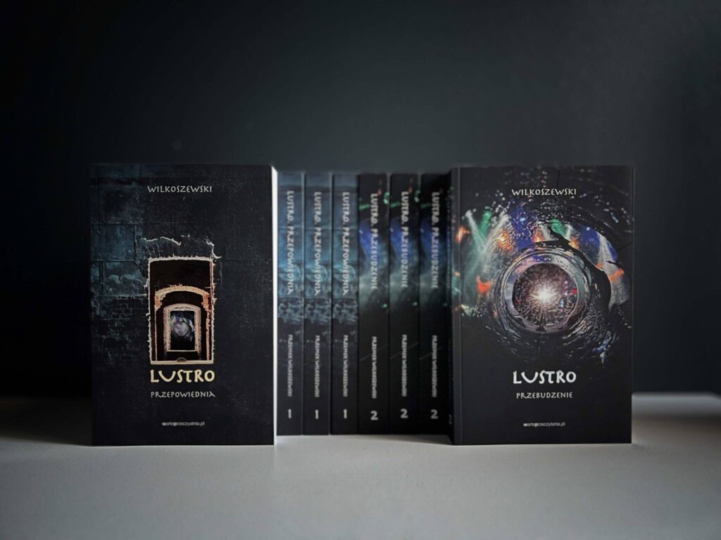 Przemysław Wilkoszewski: Pisząc Lustrzaną Serię nie myślałem o tak banalnej sprawie jak sprzedaż. Ważniejszy był dla mnie proces twórczy oraz emocje, jakie chciałem przekazać czytelnikom w moich książkach. Nie chciałem też na wstępie mojej pisarskiej drogi zostać przemielony przez wydawnicze młyny i pierwsze wydanie zrobić po swojemu i na swoich zasadach. Dlatego wybrałem najtrudniejszą drogę, czyli zostałem samowydawcą ze wszystkimi tego konsekwencjami. Ograniczonymi środkami, brakiem dostępu do dystrybutorów, sieci sprzedaży i promocji. Za to sam „opakowałem” swoją powieść w okładki jakie chciałem, ze wszystkimi bajerami (lakiery, srebrzenia itp.), biały papier i skład po swojemu. Projektując okładki i ilustracje, składając teksty, miałem wielką radochę, widząc jak spod moich palców wychodzi kompletne dzieło zrobione przeze mnie od A do Z. Oczywiście dysponując ograniczonymi środkami i bazując jedynie na moich cudownych przyjaciołach, którzy mi pomagali i wspierali, nie ustrzegłem się błędów. Potraktowałem je jednak z dystansem i uznałem, że będą takim wyjątkowym „smaczkiem” pierwszego wydania. W końcu nie ma ideałów i każdy ma coś popsute. Najważniejsze, że spełniłem swoje marzenie – najlepszy prezent z okazji pięćdziesiątych urodzin.