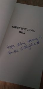Mocny kryminał z nutą namiętności sprawił, że Emilia Wituszyńska jest zapowiedzią powiewu nowego stylu w polskim kryminale, któremu Czyt-NIK ma przyjemność patronować. Słowa podziękowania kieruję w stronę Wydawnictwa Kobiecego, które otworzyło Autorce drzwi do polskiego kryminału, a nam czytelnikom dało możliwość wejścia do „Niebezpiecznej Gry”. Dziękuję również Autorce, Emilii Wituszyńskiej za wyjątkowe chwile z lekturą oraz dedykację z życzeniami dobrej zabawy. Pani Emilio zabawa była przednia.